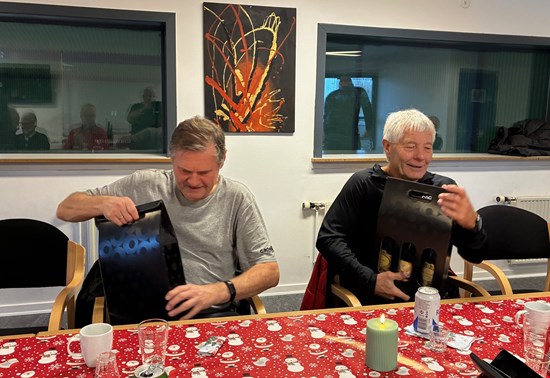 Der var også en gave til FC Prostata og Venners "altmuligmand", Bent Jensen, som bl.a. igen i år havde stået for og været primus motor ved indkøb og at få alt gjort klar i tennishuset til den hyggelige julefrokost.