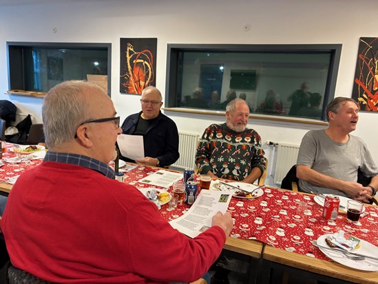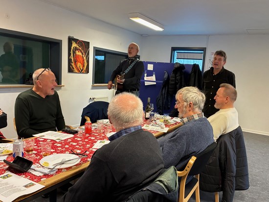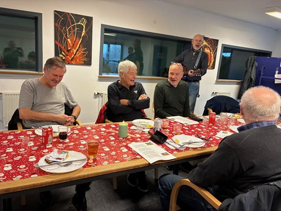 Der herskede en fantastisk stemning da den dejlige julemad, bestående af sild, smørrebrød, kaffe og julesmåkager blev indtaget, ledsaget undervejs af taler, anekdoter, gode røverhistorier og festlige sange der blev ledsaget af lystig guitarmusik.