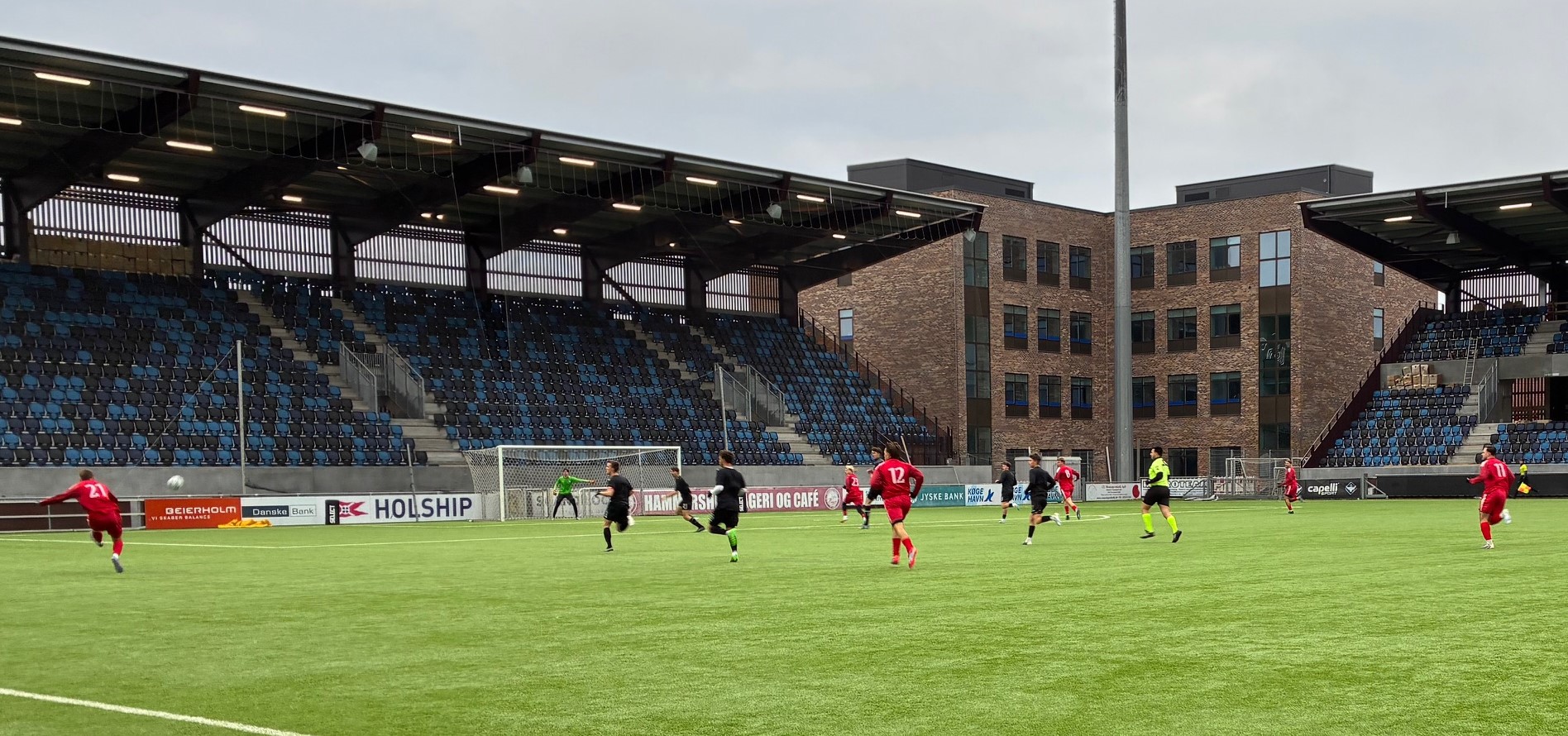 Til anden halvleg skiftede Køge alle mand, minus Lukas Thorsted som var kommet ind i stedet for Bertil Storskov, og holdet spillede igen et nyt system.